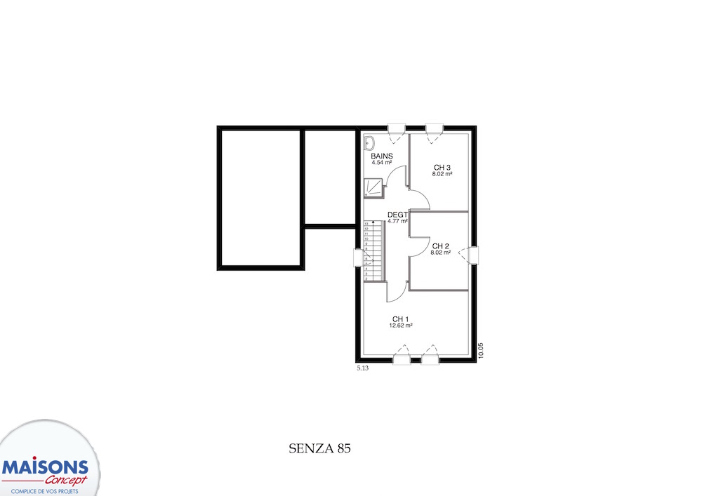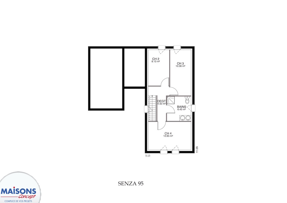 Comme de nombreux modèles, la Senza est modulaire et pourra accueillir selon vos souhaits, une chambre supplémentaire ou un « toit-terrasse ».