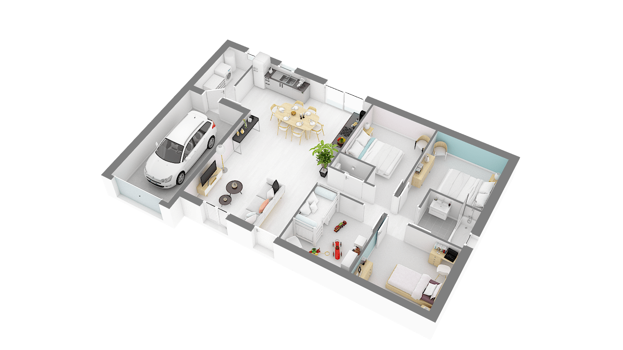 Modèle de la gamme Primaciel, la Topaze est une maison familiale avec un design en L, disposant d’un porche est d’une avancée en L, elle saura se faire remarquer.
