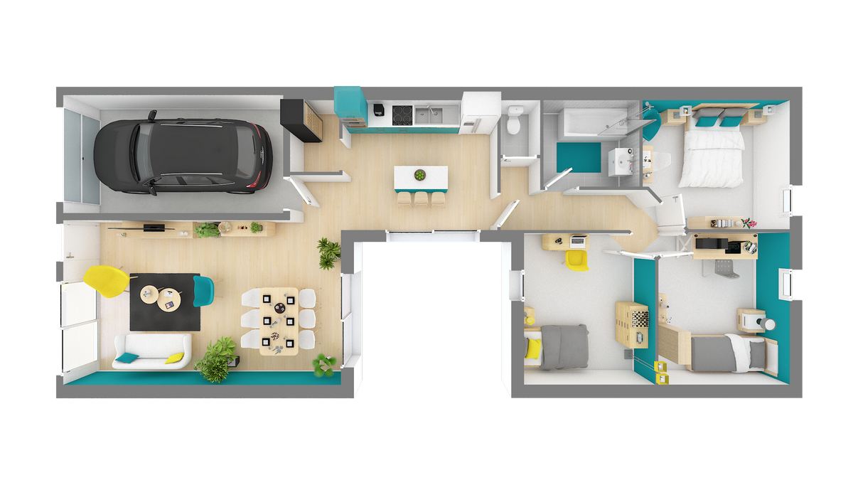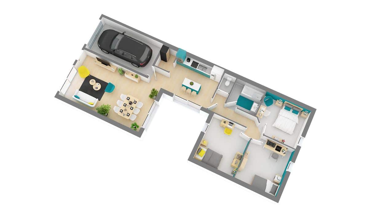 Idéale pour les terrains modestes, ce modèle est basé sur un plan en U.