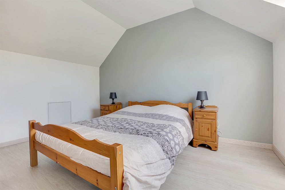Un séjour avec cuisine ouverte s’offre à vous au rez-de-chaussée, donnant sur la terrasse à l’arrière de l’habitation, par une grande baie vitrée. Sa cuisine bien éclairée et fonctionnelle vous séduira. La suite parentale, quasiment indépendante du corps de la maison, dispose d’une porte-fenêtre et d’un cabinet de toilette avec douche. À l’étage, les chambres accueillantes en soupente sont inondées par la lumière tombant des vélux.