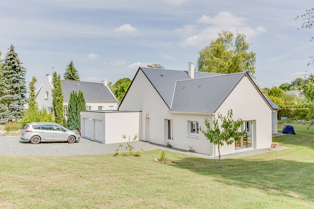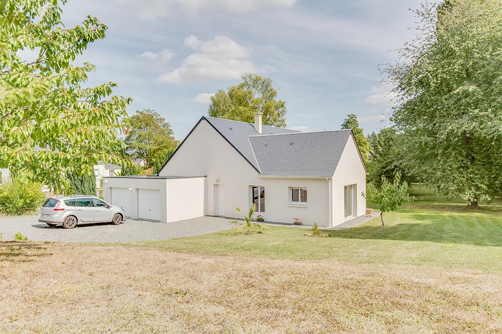 Maisons Concept vous présente cette superbe maison de plain-pied située à Reignac-sur-Indre. Quelle bâtisse ! Elle a bien des atouts à proposer. De structure imposante, son très beau toit d’ardoise surplombant ses murs blancs a tout pour séduire. Construite quasiment en L, elle dispose cependant d’un bâtiment accolé comportant deux garages ! Ses très nombreuses ouvertures vers l’extérieur garantissent une grande clarté.